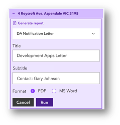 Templates are created using MS Word and then uploaded to the reporting library in Geovonic Connect.